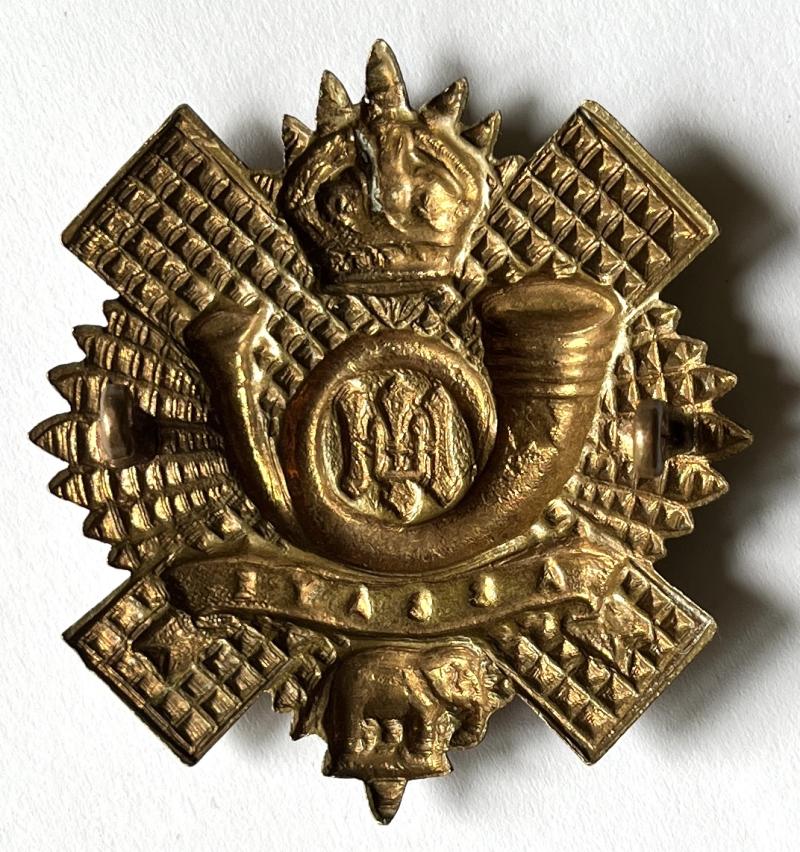 Good example of the Great War economy cap brass in brass. Rare to find in brass with the long scroll. No rubbing or damage. V.G.C.