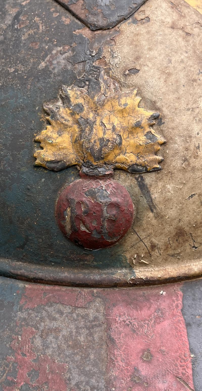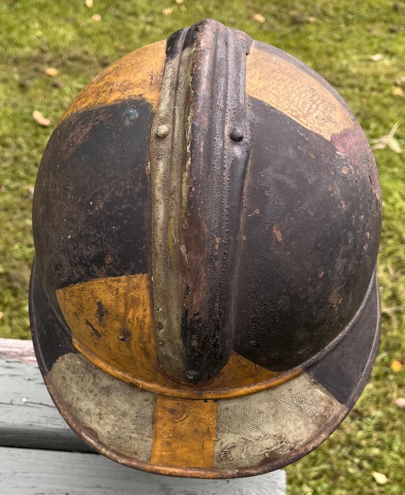 WW1 FRENCH ADRIAN HELMET - C/W PERIOD GEOMETRIC CAMO