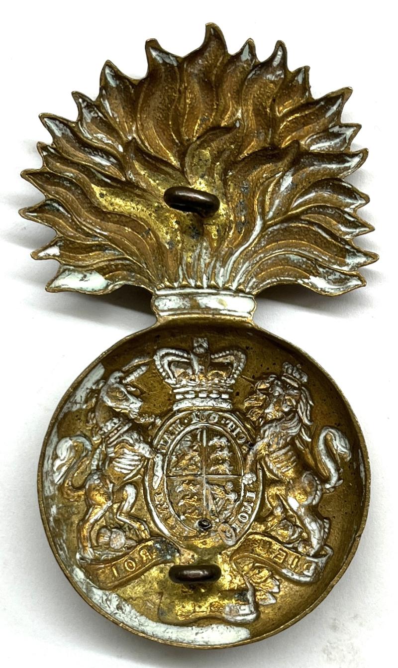 An exceptional example of a brass o/r's cap badge for the RSF. Higher than normal relief to the centre details . No rubbing or damage. Nicely toned. Old polish residue to back. QVC crown. VGC