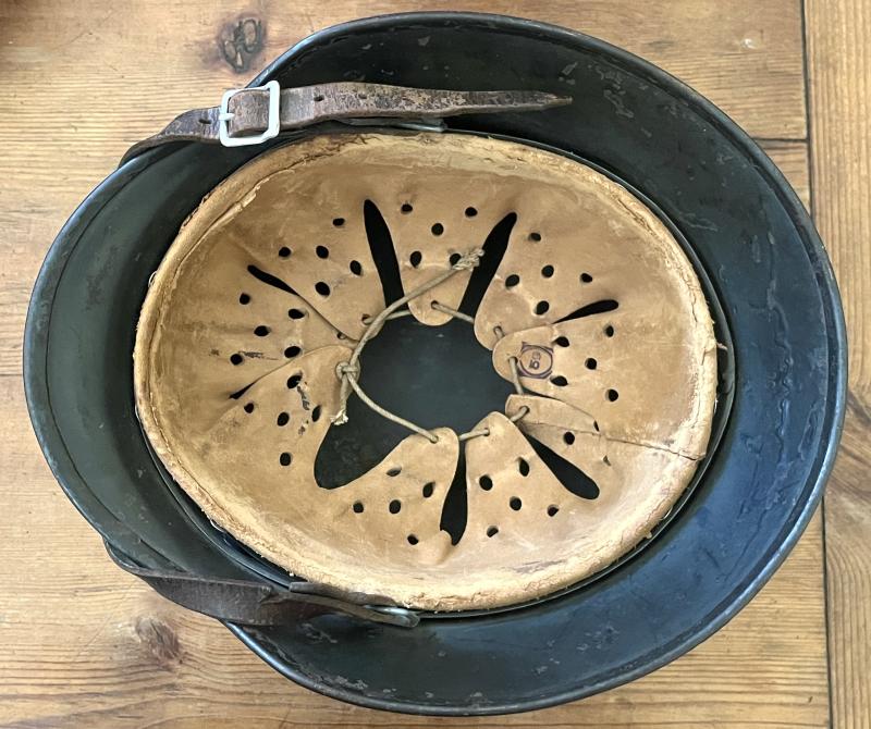 Note, for a long period , Quist Dn's were largely produced as no decal helmets and the fact this has survived as such and not been enhanced by the addition of a post war applied decal makes it a scarce helmet.