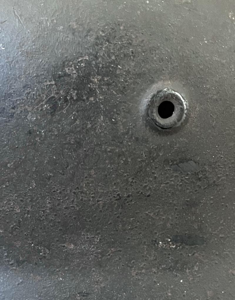 Rear mkd, " Q66 " and Lot no. " DN ...", the rest of code being obscured by a paint run which is recorded as characteristic of helmets coming out at that time ( Brian Ice ).