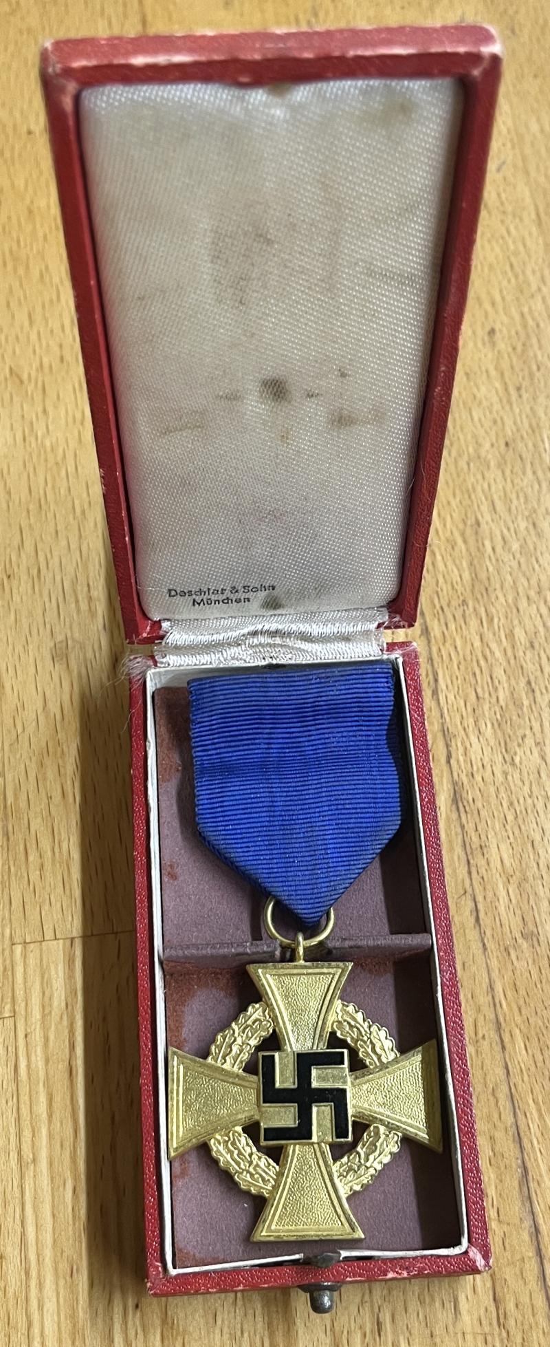 GERMAN - WW2 - CASED - 40 YEAR FAITHFUL SERVICE CROSS - DESCHLER