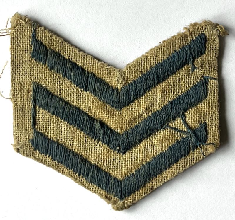 Nice example in blue for 3 years service overseas between 1915 / 19. One chevron for each year. Pale blue on tan . Hessian backed. No moth or damage. V.G.C.