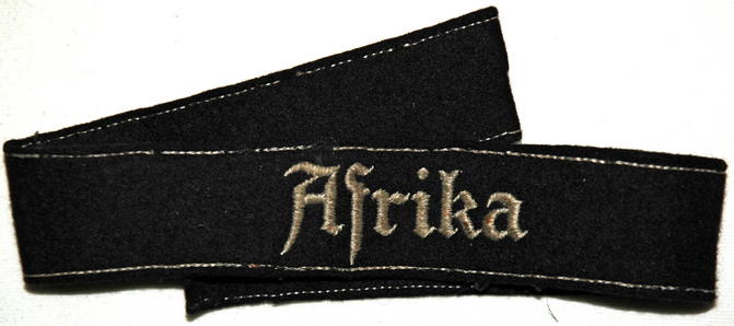 A rare unofficial variant captured in the desert by a member of the RAF Regiment. Full length. Black felt with white embroidered "AFRIKA", officer pattern with white trim.