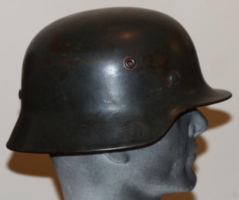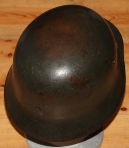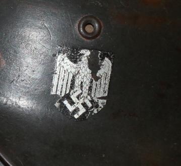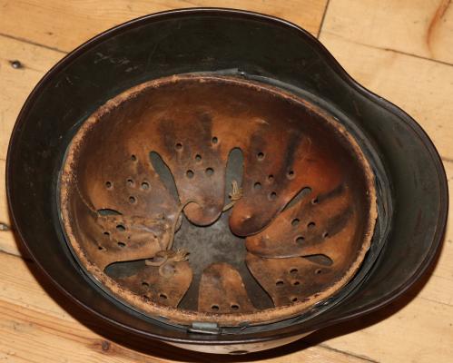 Good clean helmet by Thale Iron works. Good decal. Shell retains a large percentage of it's original smooth field grey paint. Some reddish/ ochre paint around the helmet pins would indicate it possibly having had a camo applied at some point during it's working life. Great liner with just a nice amount of service wear. Original draw string present but broken.