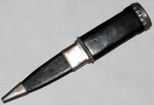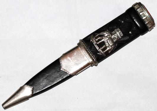 Very striking and super rare Sgian Dhu to the DRV. This one has a beautiful large Regimental device of Elephant and Howdah with Fortitude through Strength motto below.