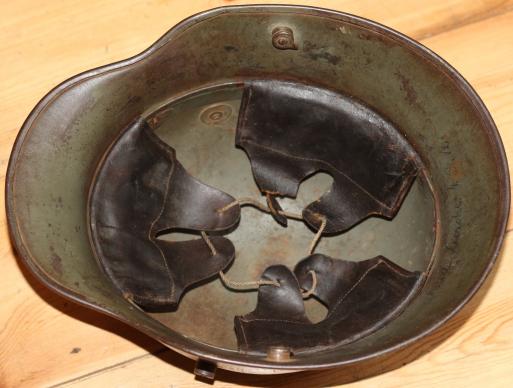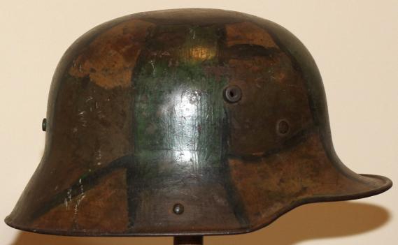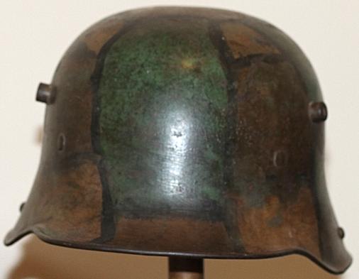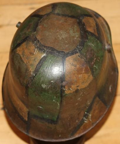 Stunning example still retaining very bright colours and with an amazing "Tortoise" camo. Large size, named to rear apron. Good liner with it's original hair pads. No chin strap.