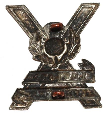 Scarce 2 lug example. Removed from it's original glengarry which only had the corresponding north/south lug holes. Nicely detailed white metal. Usually found with 4 lugs.