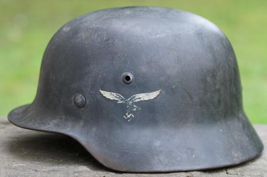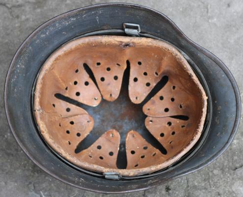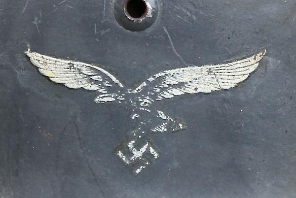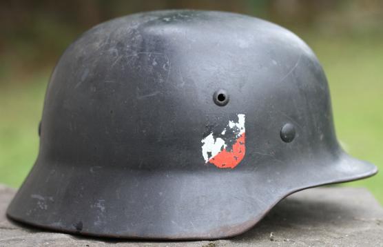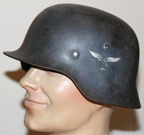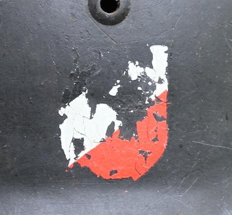 Nice very early re issue double decal in a large size. 2nd pattern eagle. Batch no.073. This helmet left the factory in 1935 as a double decal with 2nd pattern eagle according the book on helmet codes.