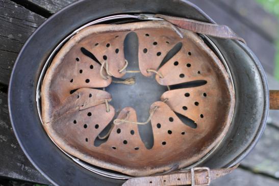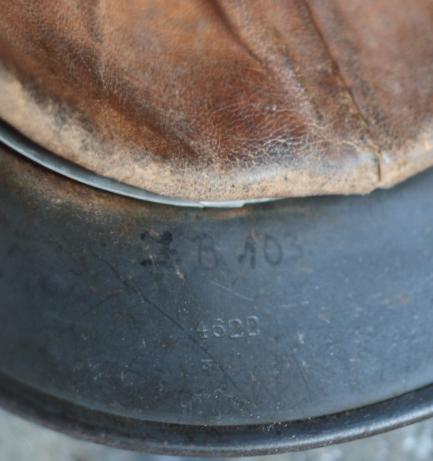 The helmet is a large size Q66 (QUIST) , lot no. 4622. Maker mkd. original full length chin strap. Double banded liner band , again confirmed in the Rice book.