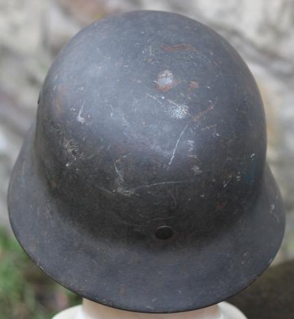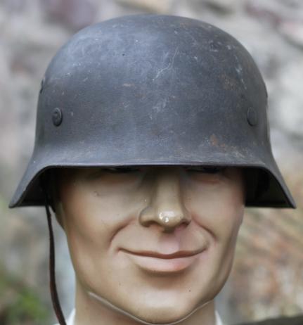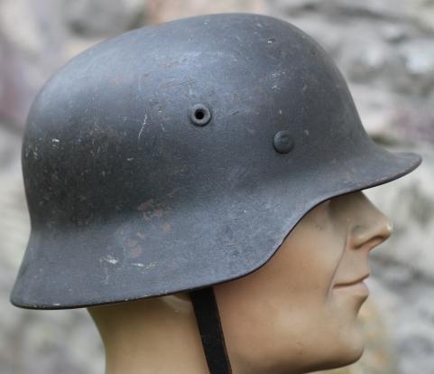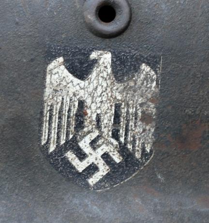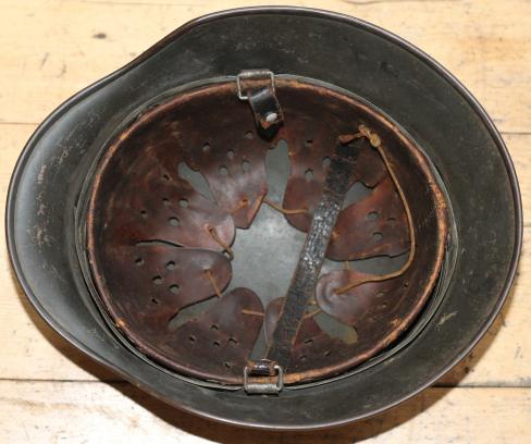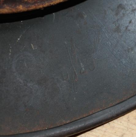 NS 64 and lot no. D 129. This ties in with the Brian Ice book as having left the factory in early 1940 and with zinc band/sheep skin liner which this still has. Also confirms it as having been a single decal Heer.