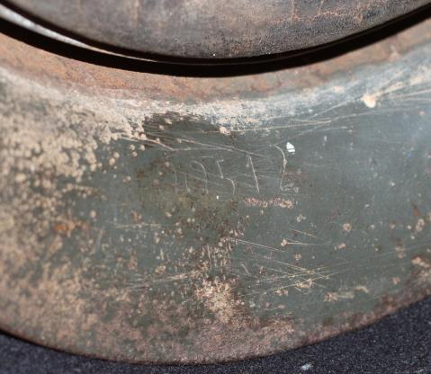 Under the front peak is scratched the Feldpost number 00512. This was used exclusively by Dirlewanger and nobody else. It was forum posted and got a 100% thumbs up.