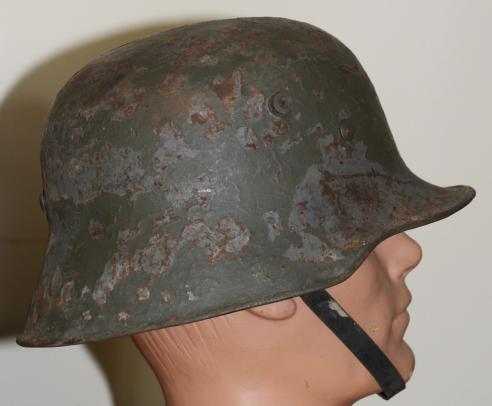Transitional helmets, i.e. WW1 helmets fitted with WW2 type liners were used inter war during the Nazi period, and wartime they were used primarily by 2nd line troops.