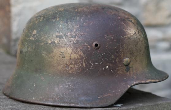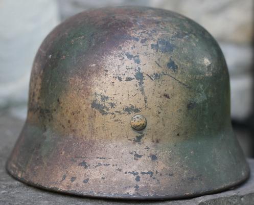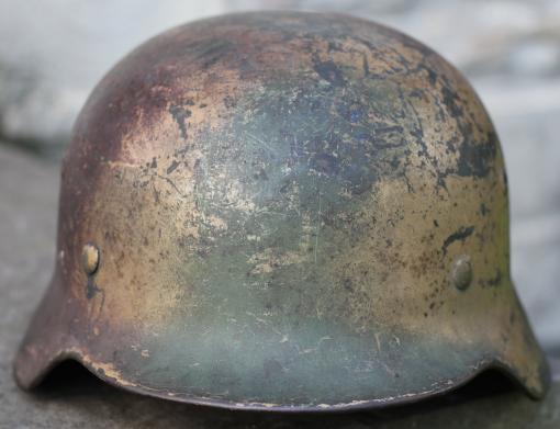 Outstanding helmet in 3 colour Normandy camo of tan / red / green.