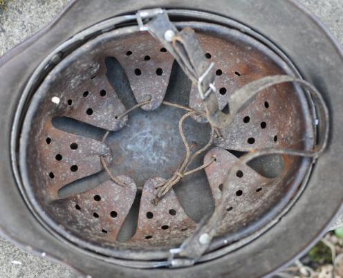I've left it as found with it's mouldy sweat stained liner, which incidentally comes off without damaging or darkening the liner.