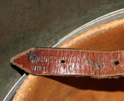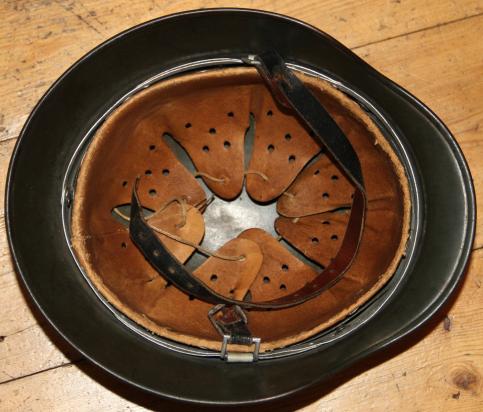 Chin strap although original to it is a later 1943 dtd. and maker mkd. example. Not unusual given this is an early helmet.