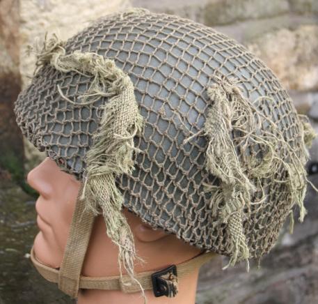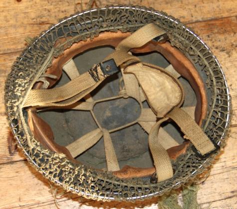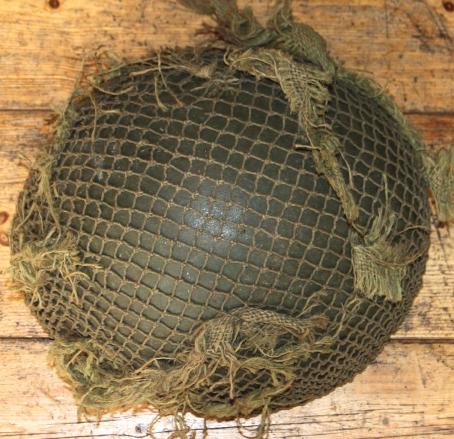 Good huge size 8. Shell retaining almost all it's drab paint finish. Net good. Good liner, top pad etc. The khaki 2nd pattern straps good but with one field repair to one end, ( see pics ).