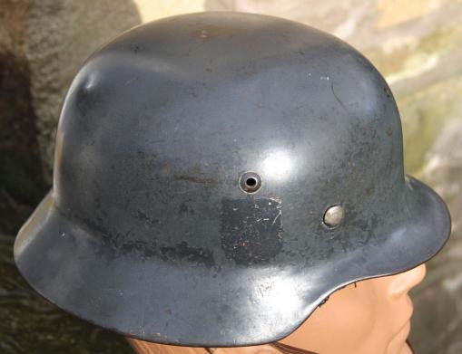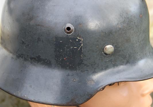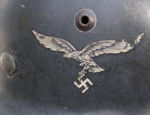 Great all complete helmet. SE 64 shell. Good 2nd pattern Eagle decal. State shield painted over but visible under the paint. Obscured as per the 1940 decal drop directive.
