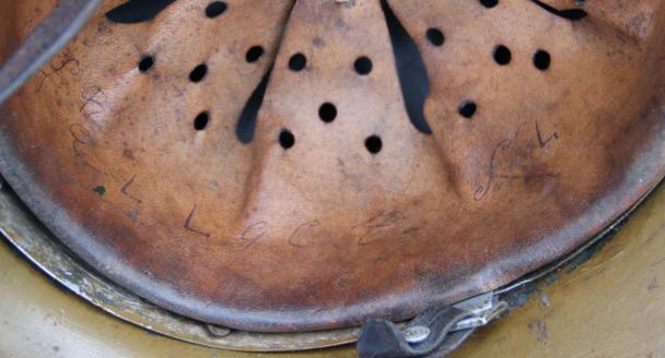 All original with near absence of markings as is the norm with helmets made for export. Early single banded aluminium liner band. Full length chin strap with aluminium buckle.