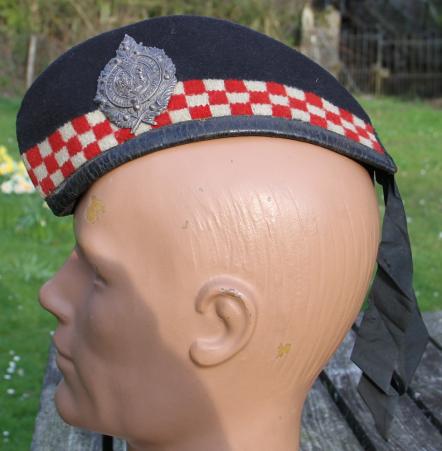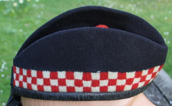 As per early Argylls example with shallow shape and leather trim. This one with shortened silk tails which may have been a Regimental affectation.