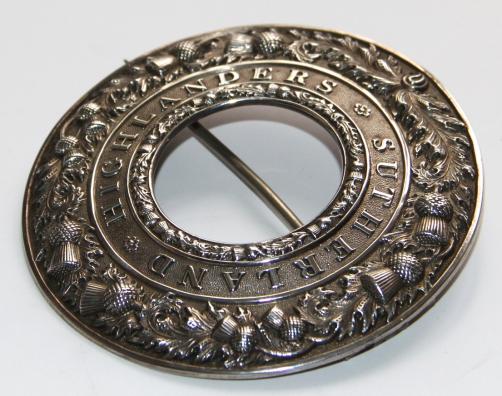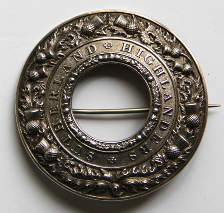 Quoit with very sharp detailed thistle spray to outer part, this in high relief. Strap with Sutherland Highlanders and inner ring of thistles.