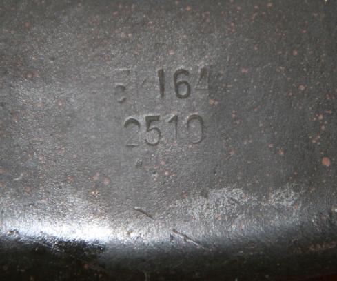 Wermacht adler decal very good. Size 57 liner with service wear round the lower leading edge. Remains of chin strap at one side. Code numbers to rear skirt, CKL 164 2510.