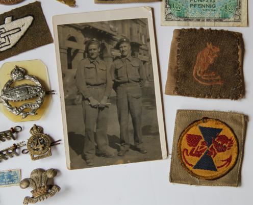 During his service he served with different armoured units and there are patches and shoulder slides to them in the group inc.,