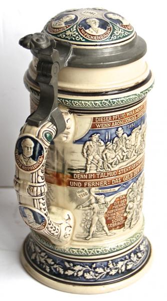 1920'S / 30'S ANTI SEMITIC BEER STEIN - DEUMLER & BEIDEN 1893