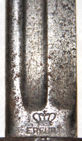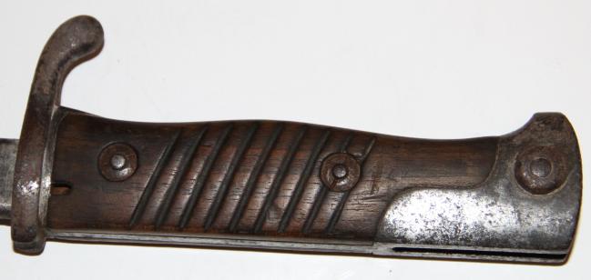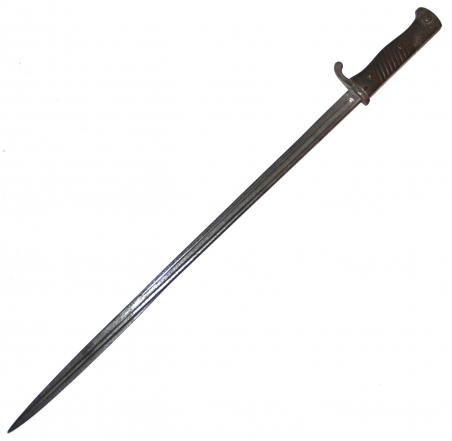 First model Mauser bayonet used up to and including WW1. Blade measures 20 and a half inches. Overall length just under 26 inches.