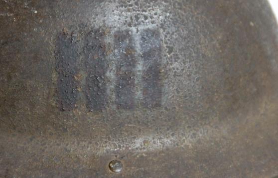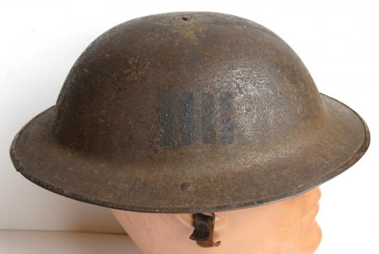 Rare 2nd pattern Brodie with 4 vertical lines for the 8th Argylls.Div. stripes to both sides of the helmet.These have been originally red but have faded to almost black.