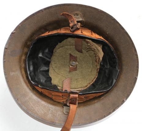 Liner good condition but loose. Red Brodie stamp. Chin strap partially present and impressed with ( size ) 7.Most rough paint finish present to exterior. Felt crown pad good with no moth damage.