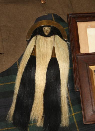 Group comprises, WW1 leather trim glengarry with it's original badge. Tails cut off as per usual with front line soldiers. 1902 Pattern tunic with the soldiers number and a further " Gor "( Gordons), these both paint stencilled to the inside. Fitted with GS buttons, brass " GORDON" shoulder titles with hex lugs and Pioneer collar badges.The 9th Btn. to which this man belonged were the Pioneer Btn.. Regimental kilt, this also with the same details as the tunic stamped to the inside. Pre war Regimental hair sporran in good order and with brass cantle and sporran badge.