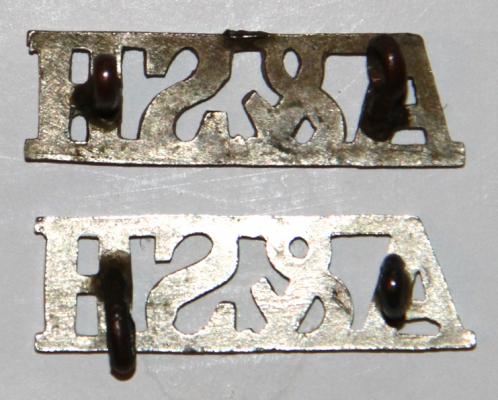 Rare white metal titles for Territorials.Very slightly mismatched but were worn as a pair by the soldier and came in many years ago with other items direct from the family home.