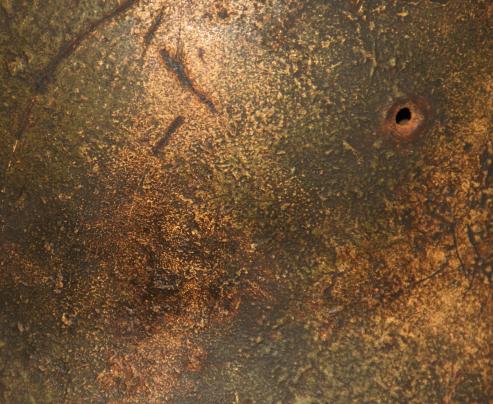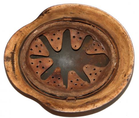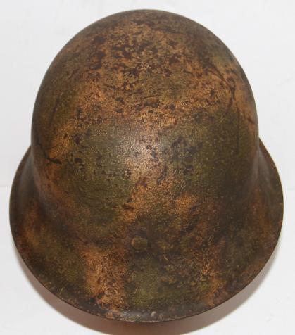 Great looking "Been There" combat helmet. Rough finish Zimmerit tan & green as used in Italy. Originally this looks like it's been all over tan Southern Front camo then later the green has been added . The inside apron retains the tan colour .