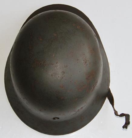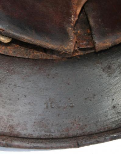 Liner complete but dry and frayed at edges and with the usual a/f seam stitching. Long end of the chin strap present.