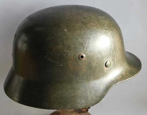 Scarce early war helmet in good condition and not re issued with the later drab paint.