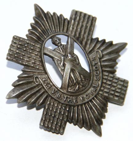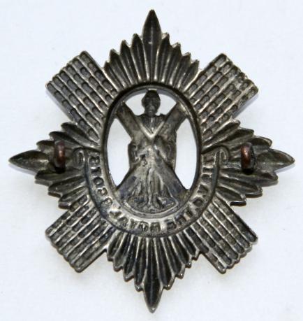 Rare cap badge. Age toned. 5th & 6th turn up but this is earlier. Circa 1903 to 1908 only. Die struck. Nice domed centre.