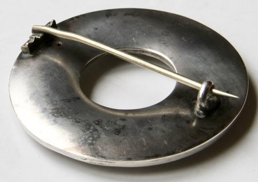 Victorian period brooch in unmarked hollow silver. Domed back. Correct over long pin. Gas escape hole. Nice detail. V.G.C.