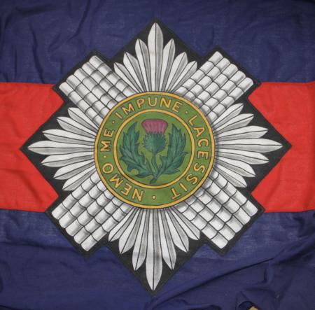 Genuine Scots Guards flag. Measures 6 feet by 43 inches approx. Hanging rope with toggle. Superb condition Rare