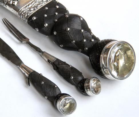 Matching stones to all 3 pieces. Sprung triggers on knife and fork both good.