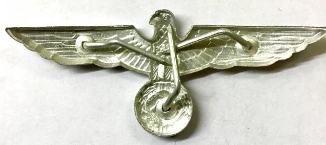 Nice alloy cap eagle. 3 pins to reverse. Shaped to cap/ V.G.C.