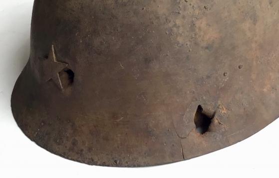JAPANESE COMBAT HELMET - BATTLE DAMAGED - MANCHURIA