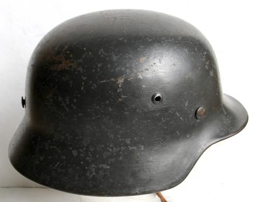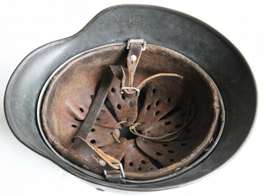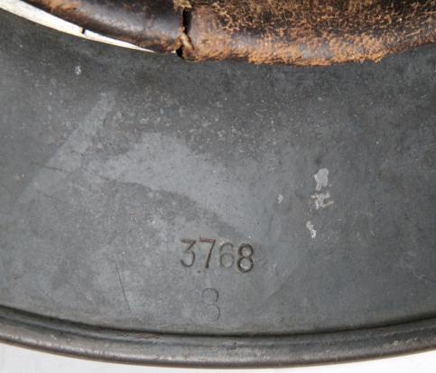 ET 64. Lot No.3768. Correct block script and this helmet configures exactly with the Rice helmet code book which has it leaving the factory in 1937 as a double decal Luftwaffe !