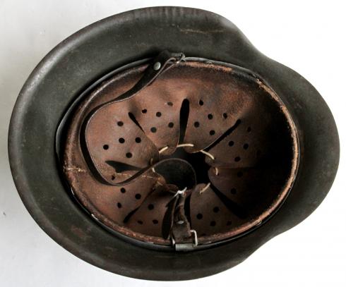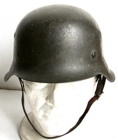Earlier aluminium buckle chin strap with clear maker and 1937 date. Reason for this unknown but it is a good genuine full length strap.