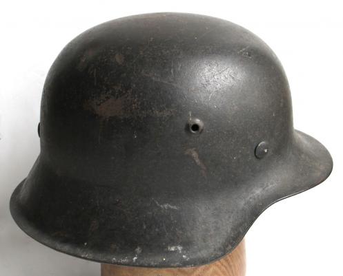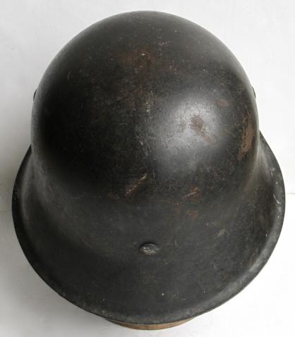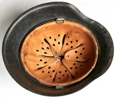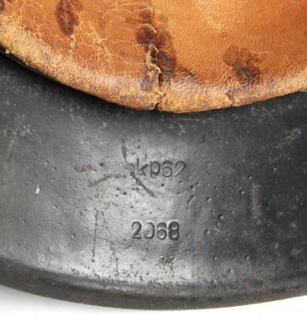 This ties in exactly with the the Rice book on helmet codes which has this helmet leaving the factory as a size 62, Luftwaffe single decal with zinc band, sheepskin liner with rear apron markings so ticks all the boxes this one.