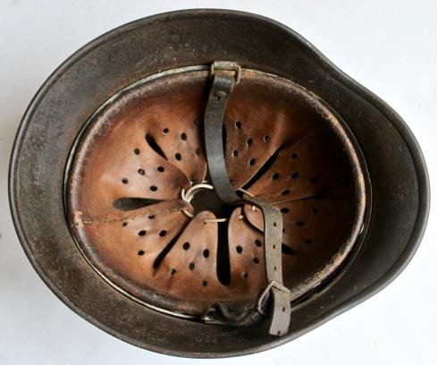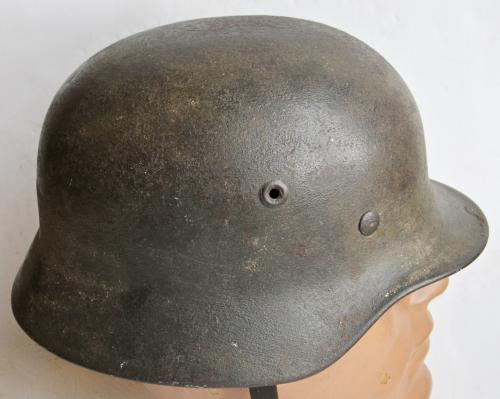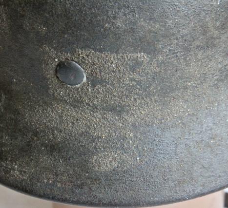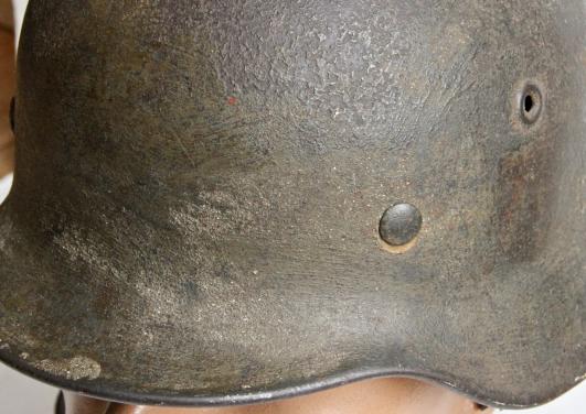 This helmet dates to 1943 and just prior to the decal drop as there is evidence of having had a single decal.