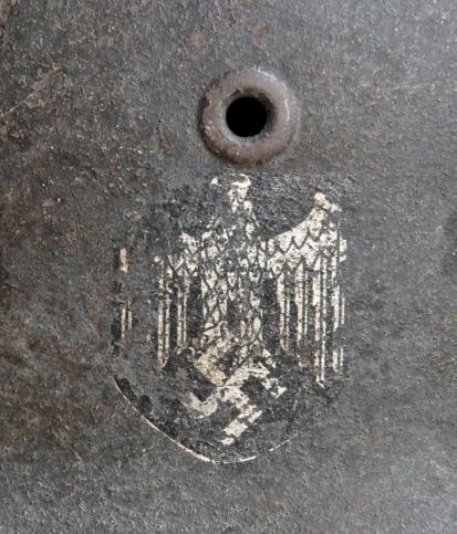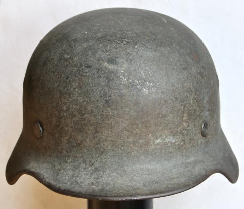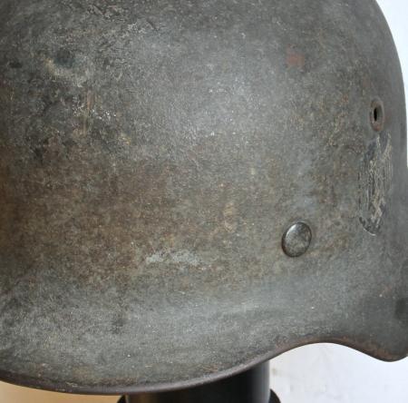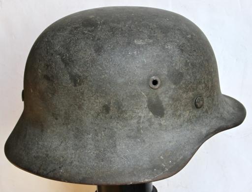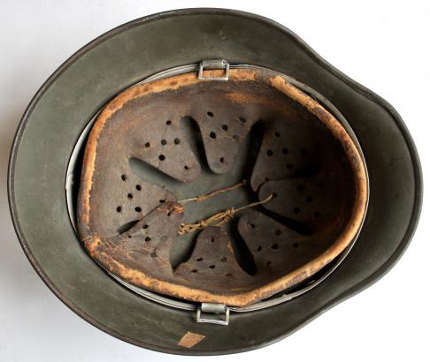 This helmet dates to 1940 and has the hybrid characteristics as they changed from aluminium to zinc liner bands so you find helmets like this where they are using the last of the M35 liner systems in the M40 shell.