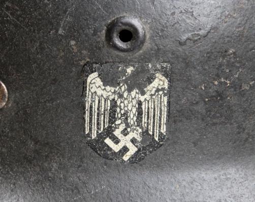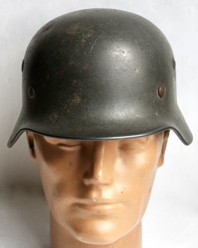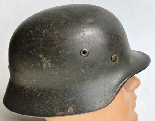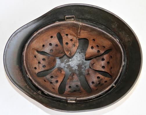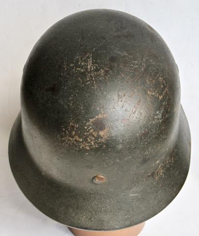 An interesting helmet which dates from 1943 according to the Rice helmet code book which sees the factory transition begin from M40 to M42 shells.