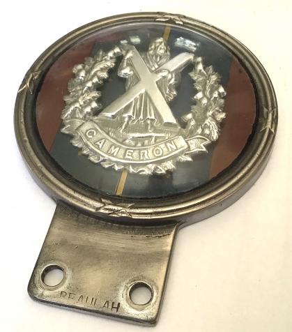 (QUEENS OWN) CAMERON HIGHLANDERS. - CAR MASCOT/ BUMPER BADGE