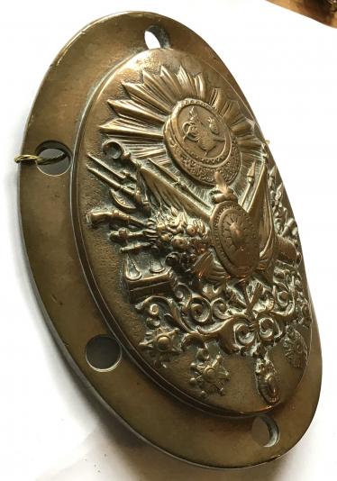 Heavy brass makers plate removed from a Turkish cannon, field gun in Essin , Mesopotamia.